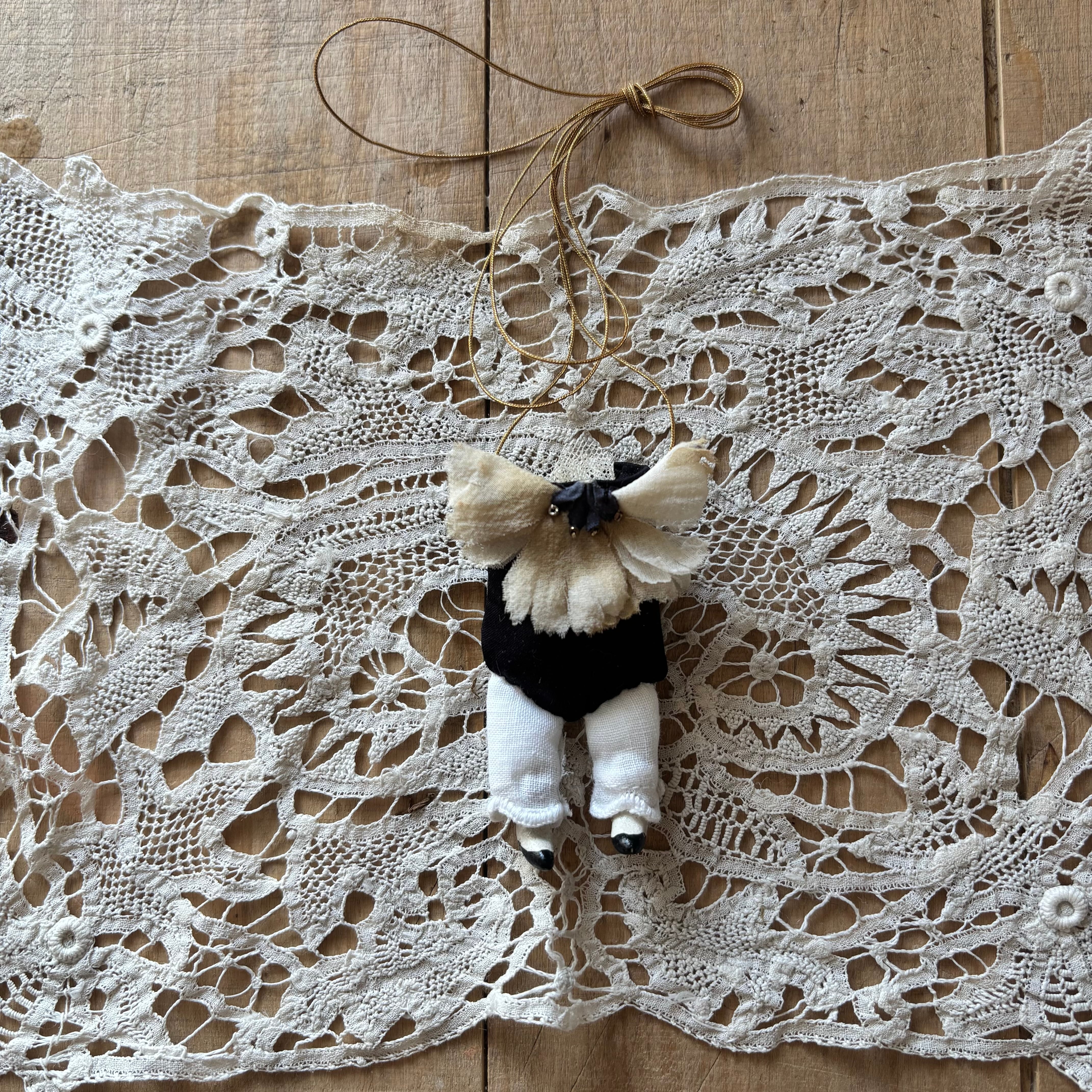 紐はネックレスになるように長くしていますが、短くしてオーナメントにして