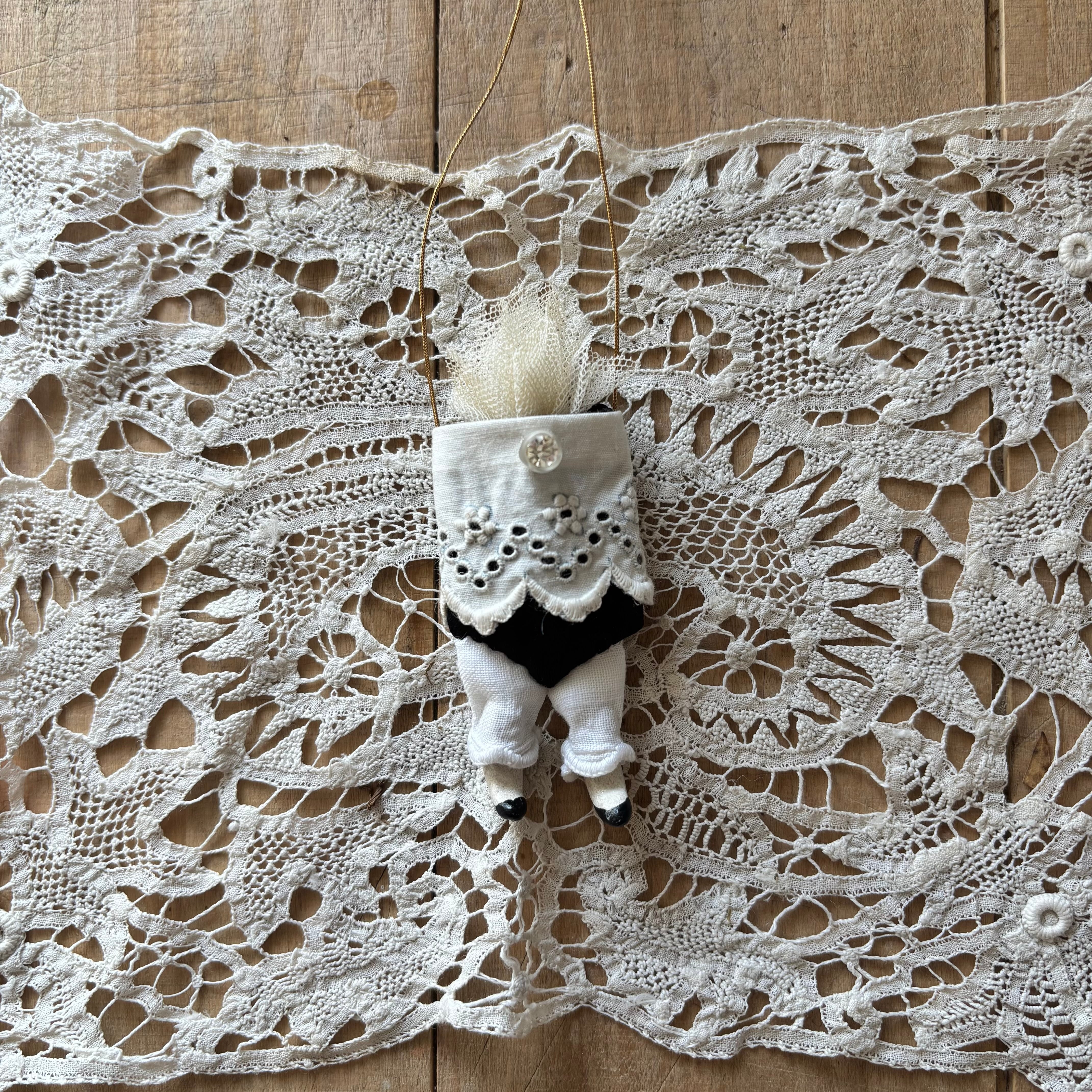 体やレースはアンティーク、足は一つ一つ